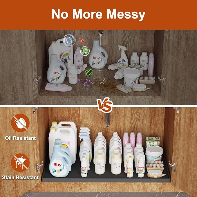 - 【Multi-purpose】This silicone mat is great to serves as under sink mat, pet feeding mat, cat litter mat, kids' craft mat and boot tray—meeting various home needs.