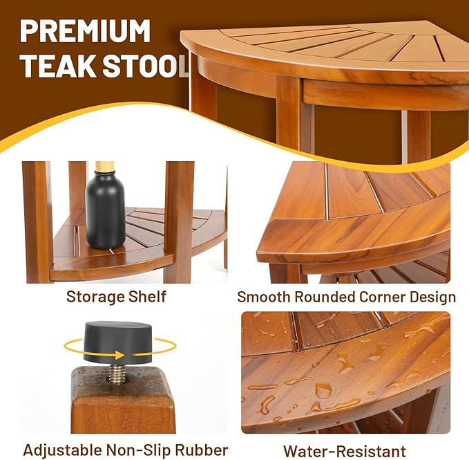 - TRIPLE TEAK OIL FINISH: Each teak shower bench is treated with three layers of teak oil at the factory, ensuring a smooth, scratch-resistant, Waterproof and easy-to-clean surface.