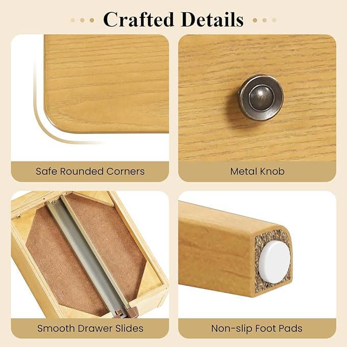 - No Assembly Needed: This small end table is pre-assembled for convenient use. The metal slides and convenient handle provide effortless opening and closing for drawer. Besides, the smooth surface allows you to clean it with a soft cloth for good maintenance.