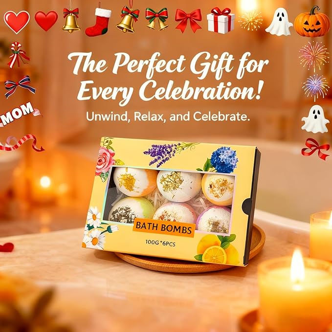 - Premium Bath Bomb Set: 6-piece bath bomb set with organic ingredients. Creates luxurious bubble bath experience. Perfect bath bombs for women, men & kids