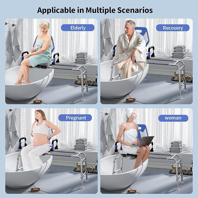 - *** Heavy-Duty Sliding Shower Chair & Height Adjustability*** :Engineered for exceptional strength and durability. Supports users up to 400 lbs, providing reliable stability and peace of mind. Features multiple secure height settings to accommodate various tub heights and user preferences. Ensures optimal comfort and proper leg positioning.