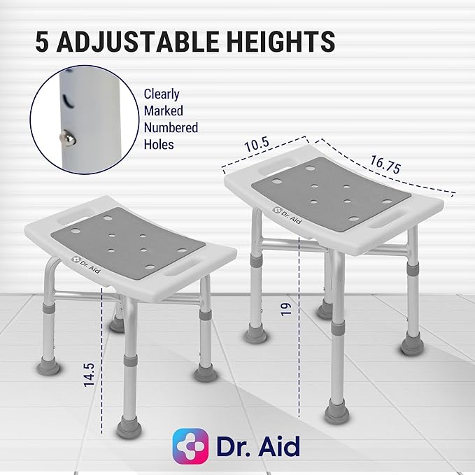 Dr. Aid Shower Chair for Inside Shower with 5-Height Adjustable Bath Seat for Adults, Seniors & Disabled, 3-Minute Tool-Free Assembly, Non-Slip Bathroom Seat for Tub & Small Showers