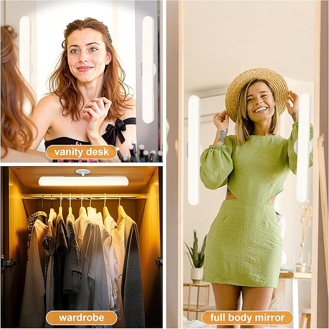 - 【Wide Range of Applications】A set of two lights offers the flexibility to meet the makeup lighting needs of large or tri-fold mirrors, making sure every angle is beautifully illuminated. Whether you’re prepping for a busy day, applying makeup for a night out, or simply needing extra light for your morning routine in dorm room, these lights are the perfect solution. Ideal for vanity mirrors, bathroom mirrors, desks, and even under cabinets, you can stick them wherever you need bright, reliable lighting—making your space shine with ease and elegance.
