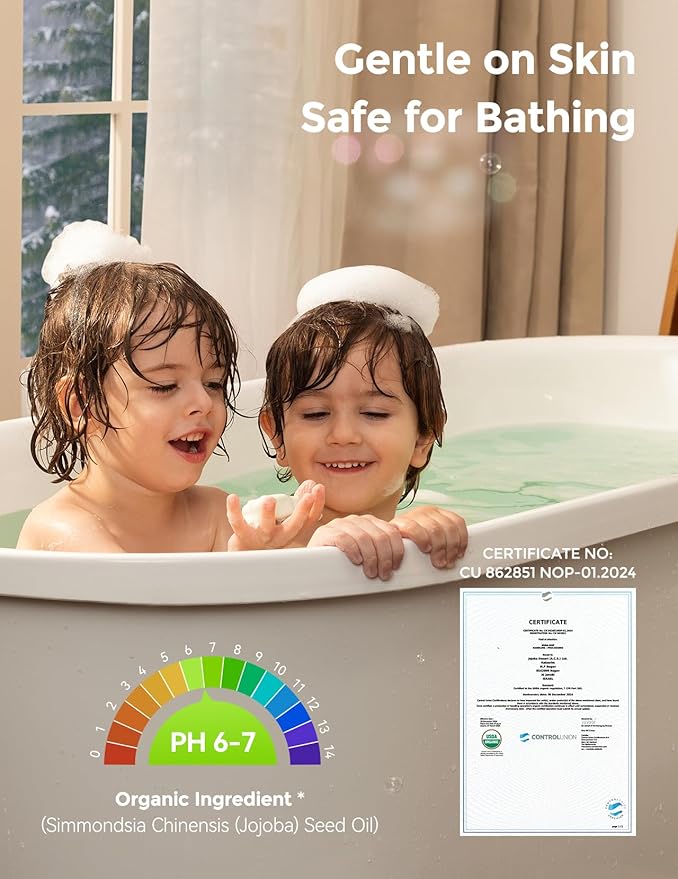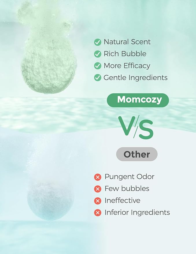 - đ§ăEssential Oil Bath BombsăMomcozy bath bombs are rich in Essential Oil(Simmondsia Chinensis(Jojoba)Seed Oil), perfect for your child's soft skin. With a gentle pH of 6.0, these bath bombs are ideally suited for kids,toddlers,and babies, offering a safe and soothing experience. Skin Friendly and Smells sweet, they provide a fun free bath.