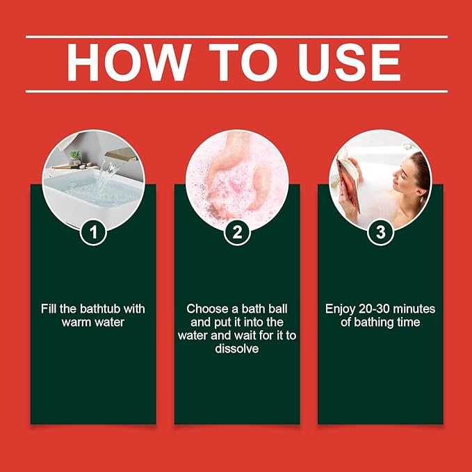 - Your 3-Step Escape to Total Relaxation Your path to de-stressing is effortless. Simply 1) Fill your tub with warm water. 2) Drop a bath bomb in and watch it transform your bath. 3) Soak for 20-30 minutes, breathe deeply, and feel the day's tension and fatigue simply melt away.