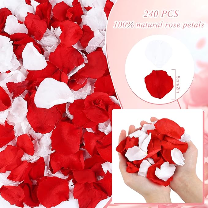 - Rose Flower Petals:Each white and red rose petal package include 240pcs rose petals,it is real rose petals,the size of rose petals is about 5cm.Adequate quantity for you to create your own romantic surrounding and spend a wonderful night with your dear