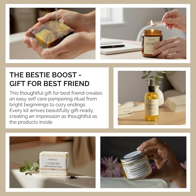 - WHEN YOU WANT YOUR GIFT TO ACTUALLY MAKE HER FEEL BETTER – Whether celebrating her wins or supporting through challenges, this best friend birthday gift speaks your language: "I see you. I'm thinking of you. You deserve this." Each home spa accessory genuinely lifts spirits, wraps her in comfort, leaves her glowing. Best friends gifts for women that feel like true friendship in a box.