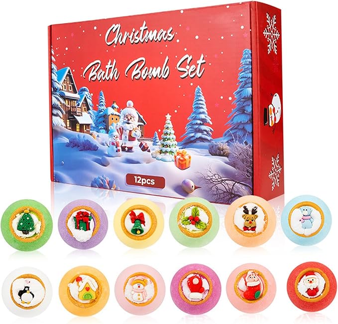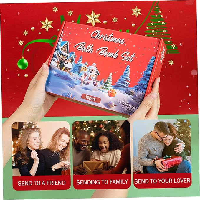 - Aromatic Variety: Enjoy 12PCS of Christmas Bath Bombs each infused with unique natural scents that provide a relaxing and aromatic bathing experience, perfect for stress relief and mood enhancement
