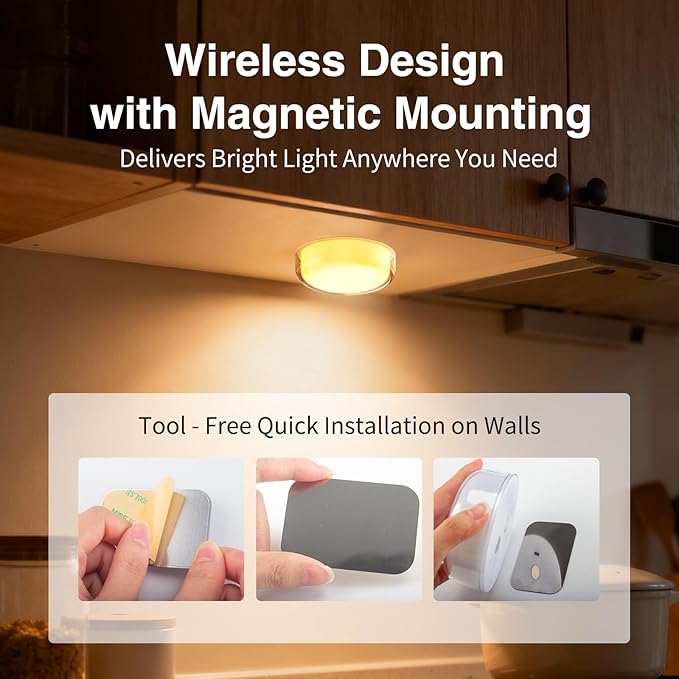 - Wireless, Rechargeable & Easy Stick-On Installation:Enjoy complete freedom from wires and outlets! This wireless light is rechargeable and features a powerful stick-on magnet base for instant installation. No drilling or tools needed—just attach the metal plate to any surface in your shower, closet, or bedroom for wireless lighting anywhere